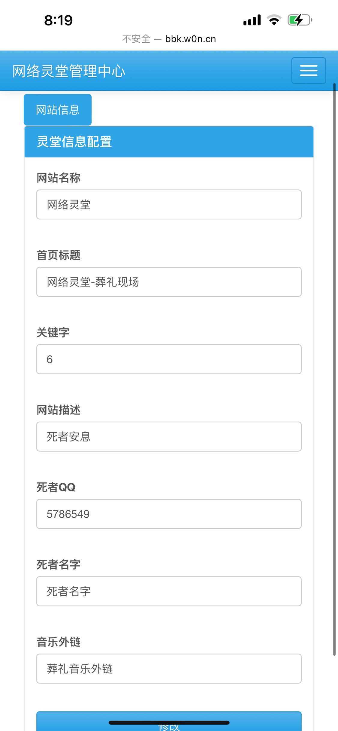 另一方面,如果您需要安抚自己因为失去了亲人而感到悲伤,您也可以使用该php网页来创造一个真实的、具有纪念意义的性的灵堂。您可以上传亲人的照片和视频,并在留言板上写下您对他们的想法和追忆之情。